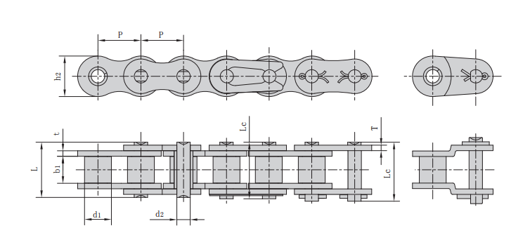 | 鏈號 | 節距 | 滾子直徑 | 內節內寬 | 銷軸直徑 | 銷軸長度 | 內鏈板高度 | 鏈板厚度 | 抗拉強度 | 平均抗拉強度 | 每米長重 | |