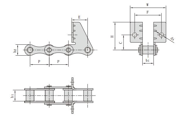 主要規格型號有:ZGS38F47(節距38mm,滾子直徑16.0mm,內節內寬22.00mm,橡膠附板尺寸W480.0mm,L360.0mm,H77.0mm,F52.0mm,Tr8.0mm)