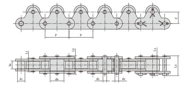 C2080H-1LTR,帶頂滾輪雙節距輸送鏈,輸送鏈廠家
